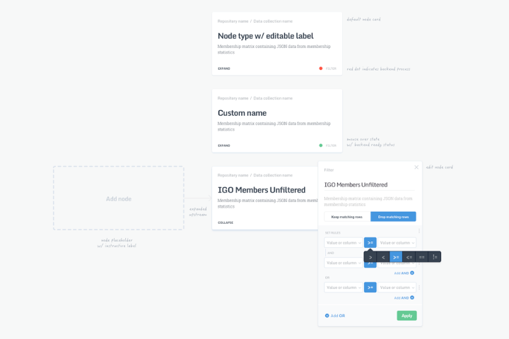 End-to-end design working with small dev team to build product from the ground up. Big part was design system and interaction patterns built around Boostrap framework.